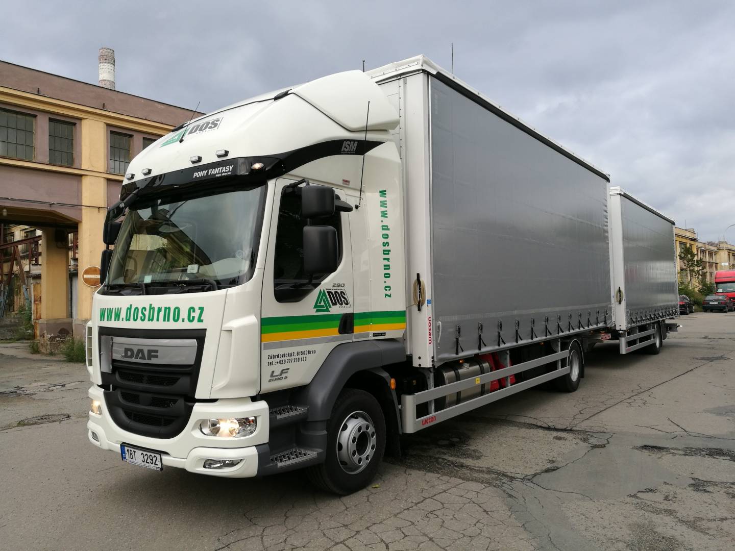 Přepraví 18 europalet + 18 europalet vlek, s hydraulickým čelem s nosností 1,5 t, zvláštní výbava ADR.